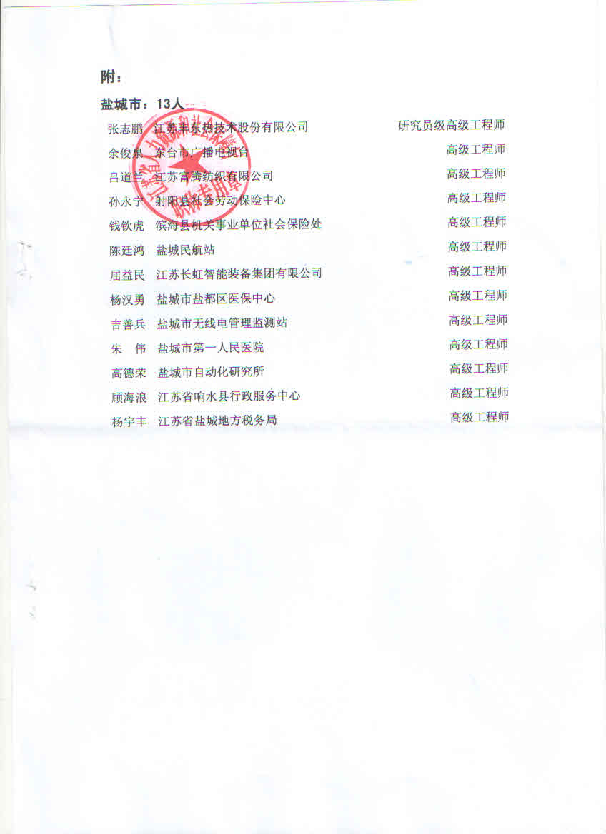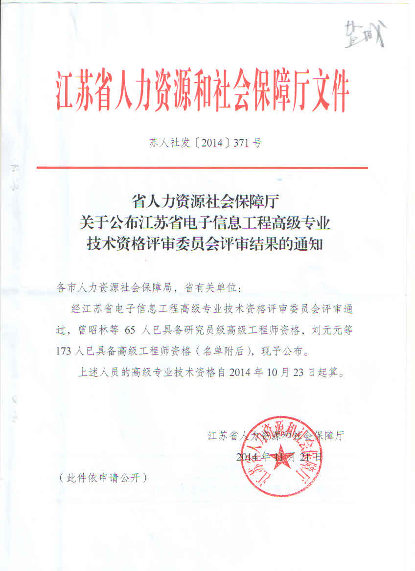 关于公布江苏省电子信息工程高级专业技术资格评审委员会评审结果的通知